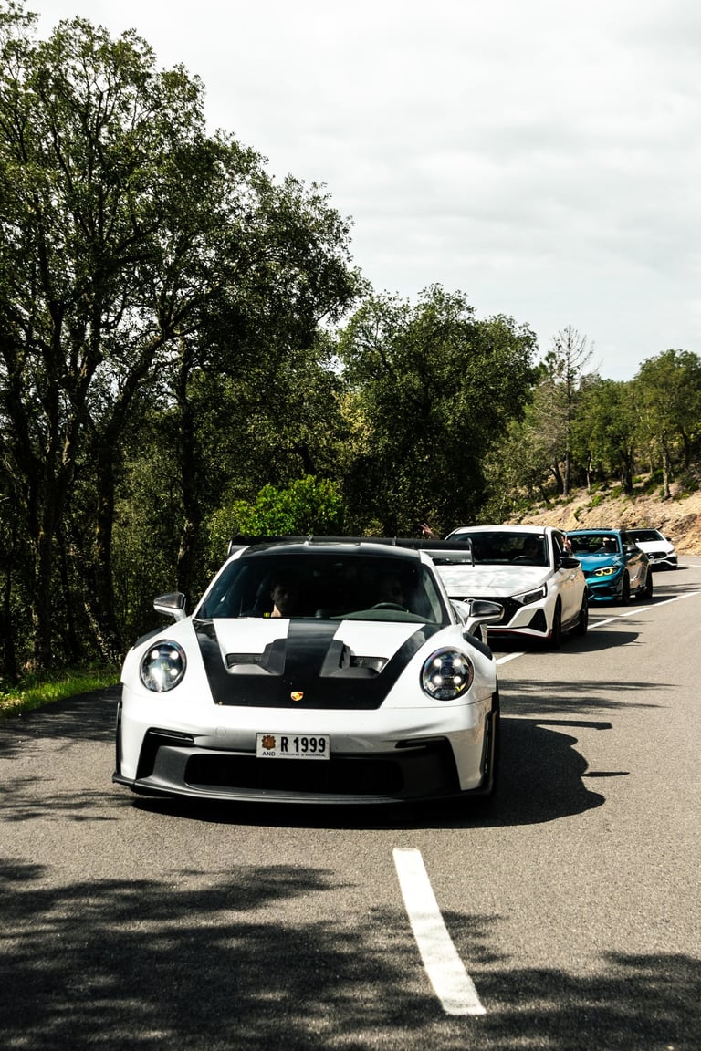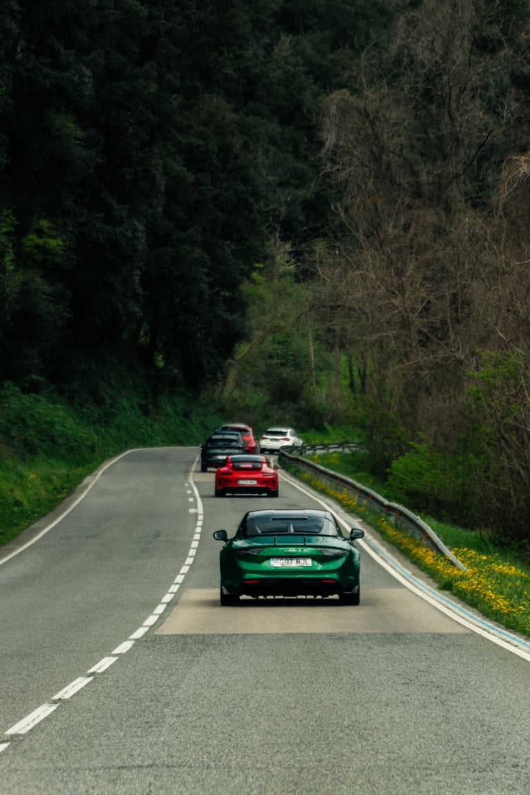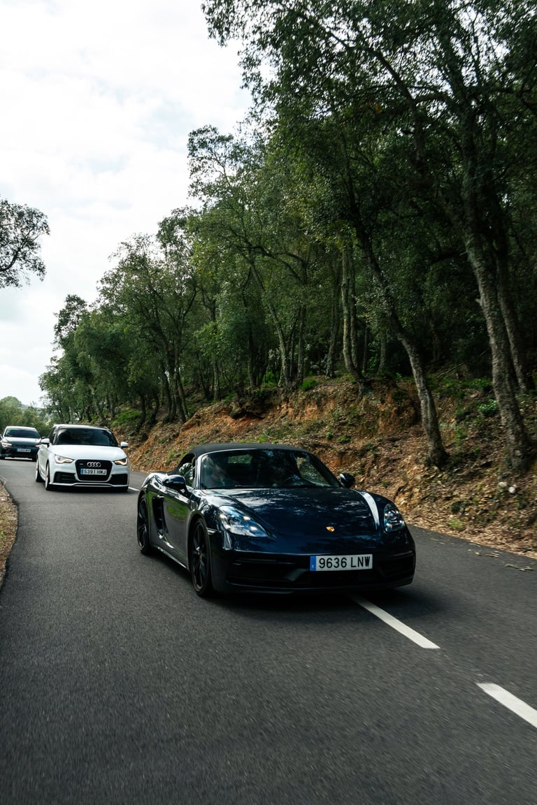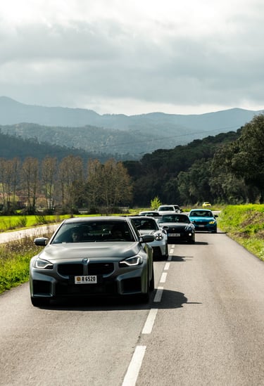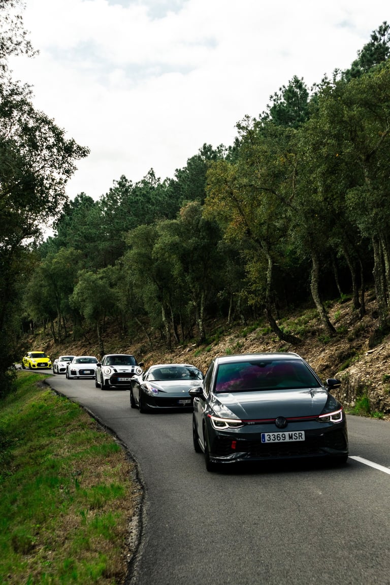 El punto de partida tuvo lugar en las instalaciones de DMA Automoción, un compra-venta de vehículos de alta gama ubicado en Parets del Vallès, que recibió al grupo con un completo desayuno antes de iniciar la ruta. A continuación, el convoy se dirigió hacia el Montseny, afrontando una primera sección de carreteras de montaña que combinó trazados técnicos con paisajes primaverales. Uno de los tramos más destacados de la jornada fue Les Guilleries, una carretera de fuerte tradición en el Rally Costa Brava, conocida por sus curvas de carácter especialmente exigente. Los coches continuaron hasta Girona para realizar una visita exclusiva al garaje privado de Xavier Piña, piloto de rally y coleccionista, que permitió conocer su selección de modelos y su trayectoria dentro del automovilismo. Tras esta visita, los participantes volvieron al volante para conducir por Els Àngels, otro de los tramos clásicos de rally en la zona, caracterizado por vías sinuosas y técnicas, antes de adentrarse en el Empordà. La parte gastronómica tuvo lugar en el Restaurant Can Saló, en Palau-Sator, con una propuesta basada en cocina local y producto tradicional. Un brindis final puso cierre a una enroute que volvió a demostrar la madurez del formato y el alto nivel de la experiencia.